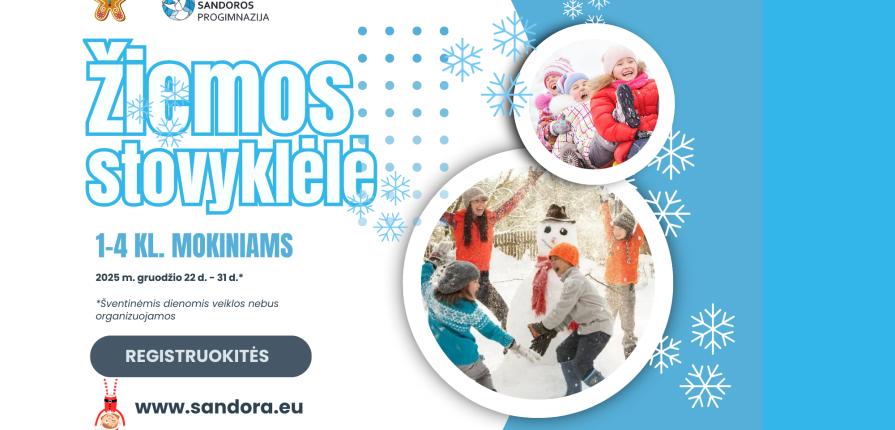 Informuojame, kad 2025 m. gruodžio 22–31 d. mokykloje bus organizuojama žiemos atostogų dienos stovyklėlė, skirta 1–4 klasių mokiniams.(Šventinėmis dienomis veiklos …