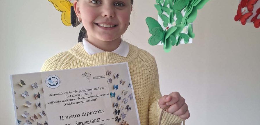 Šiandien Šiaulių „Sandoros“ progimnazijos bendruomenę pasiekė džiugi žinia – 2b klasės mokinė Vesta Širvinskaitė sėkmingai pasirodė Respublikiniame bendrojo ugdymo mokyklų 1–4 klasių mokinių raiškiojo skaitymo / deklamavimo konkurse „Žodžio sparnų nešami“.